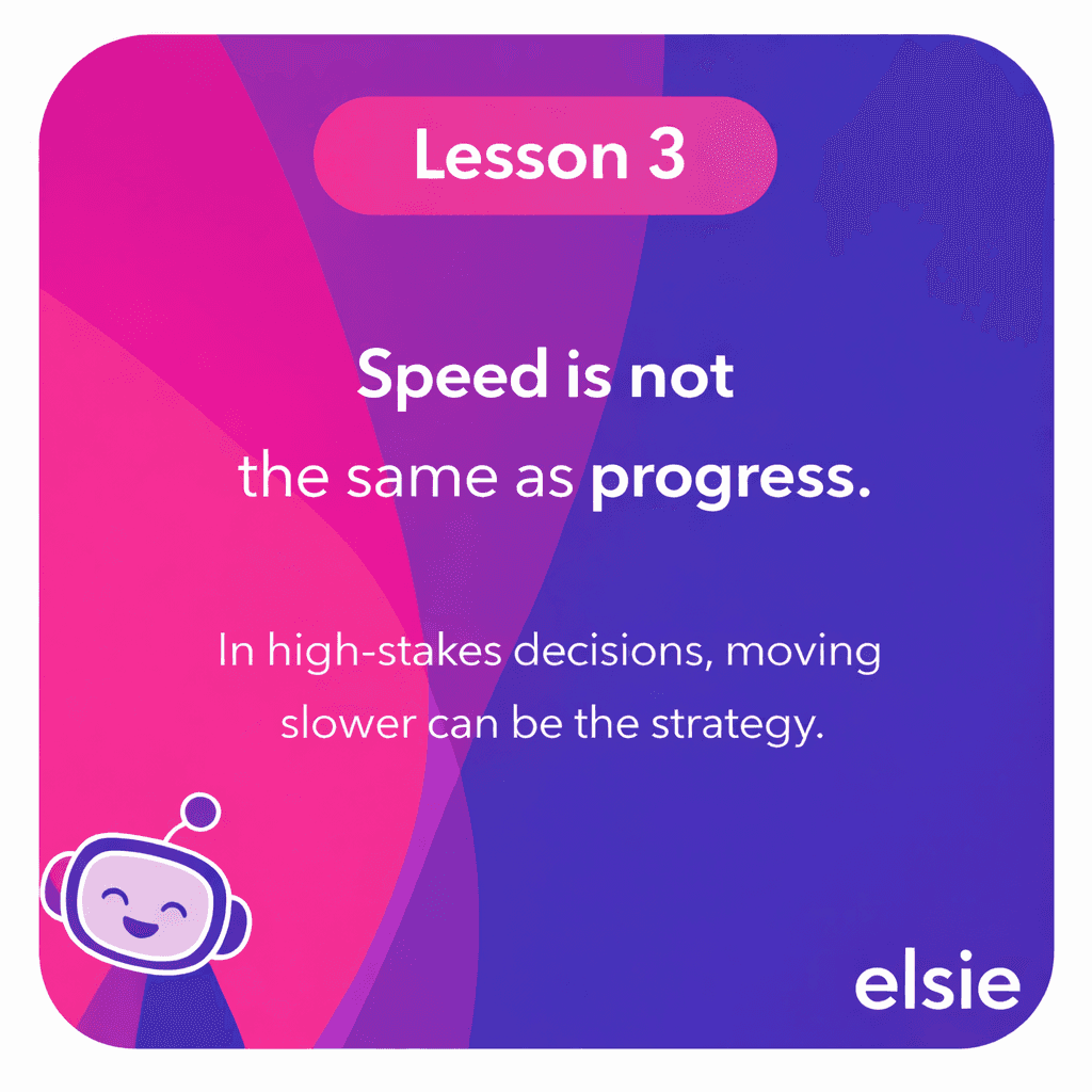 Lesson for solo founders: Speed is not the same as progress. In high stakes areas of your business, moving deliberately can be the most responsible and strategic choice.